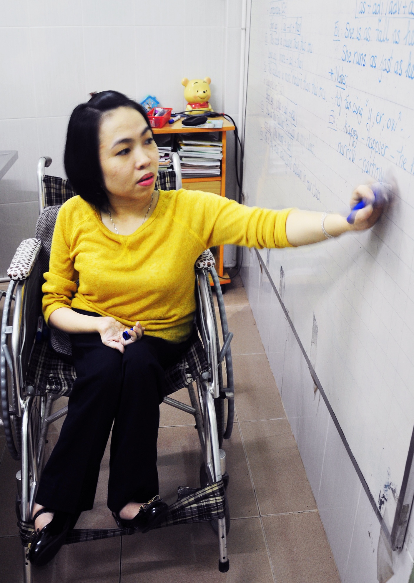 Dù ước mơ đã thành sự thật nhưng cô giáo tiếng Anh vẫn không nguôi trăn trở làm sao dạy cho thật nhiều học sinh hơn nữa, nhất là trẻ nghèo, mồ côi. Cô cũng mong gửi đi thông điệp chia sẻ với những người cùng cảnh ngộ: "Tàn tật tất nhiên là bất tiện nhưng tuyệt nhiên không bất hạnh. Cuộc sống không có gì là không thể".