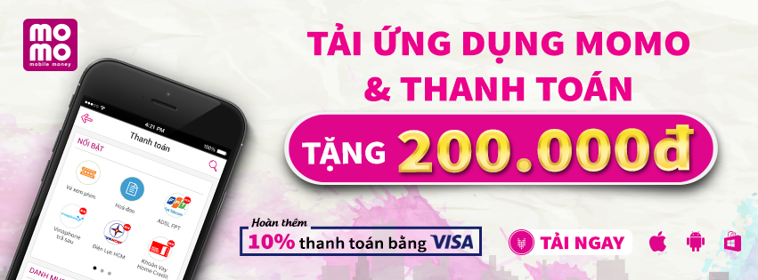 Từ hôm nay đến hết ngày 30/8, tất cả khách hàng là chủ thẻ VISA khi thực hiện giao dịch trên ứng dụng MoMo có nguồn tiền từ thẻ VISA sẽ được hoàn ngay 10% giá trị hóa đơn thanh toán. Cùng với chương trình khuyến mãi “Tặng 200.000 đồng - Trải nghiệm thanh toán trên Ứng dụng MoMo”, tổng số tiền khuyến mãi cho chủ thẻ VISA nhận được lên tới 380.000 đồng.