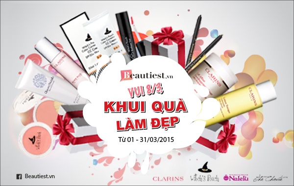 Nhân dịp 8/3, Beautiest.vn mang đến cho phái đẹp chương trình Vui 8/3, khui quà làm đẹp. Tổng giá trị phần thưởng gần 7 triệu đồng với 8 giải thưởng từ các thương hiệu Witch’s Pouch, The Choute, Nalelu và Clarins.
