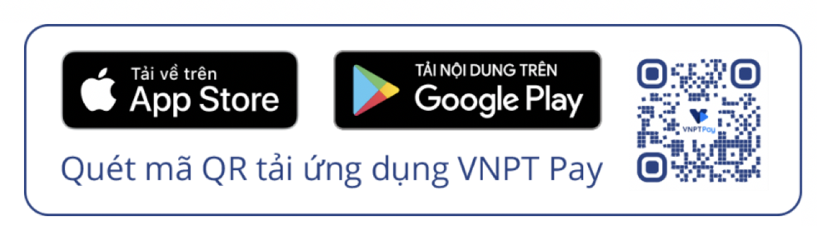 VNPT Pay là hệ sinh thái thanh toán số qua ví điện tử, thẻ nội địa, thẻ quốc tế do Tập đoàn Bưu chính Viễn thông Việt Nam (VNPT) cung cấp, đáp ứng nhu cầu thanh toán tiện lợi, an toàn và nhanh chóng cho các nhu cầu hàng ngày như nạp thẻ cào, thanh toán cước di động, truyền hình, Internet, điện, nước, mua vé xem phim, vé máy bay, bảo hiểm, đóng học phí… VNPT Pay có tính năng thanh toán tự động hóa đơn, đảm bảo các thanh toán định kỳ luôn đúng hạn. Để sử dụng ví điện tử VNPT Pay, khách hàng tìm và cài đặt từ App Store, CH Play hoặc quét mã QR code bên trên.