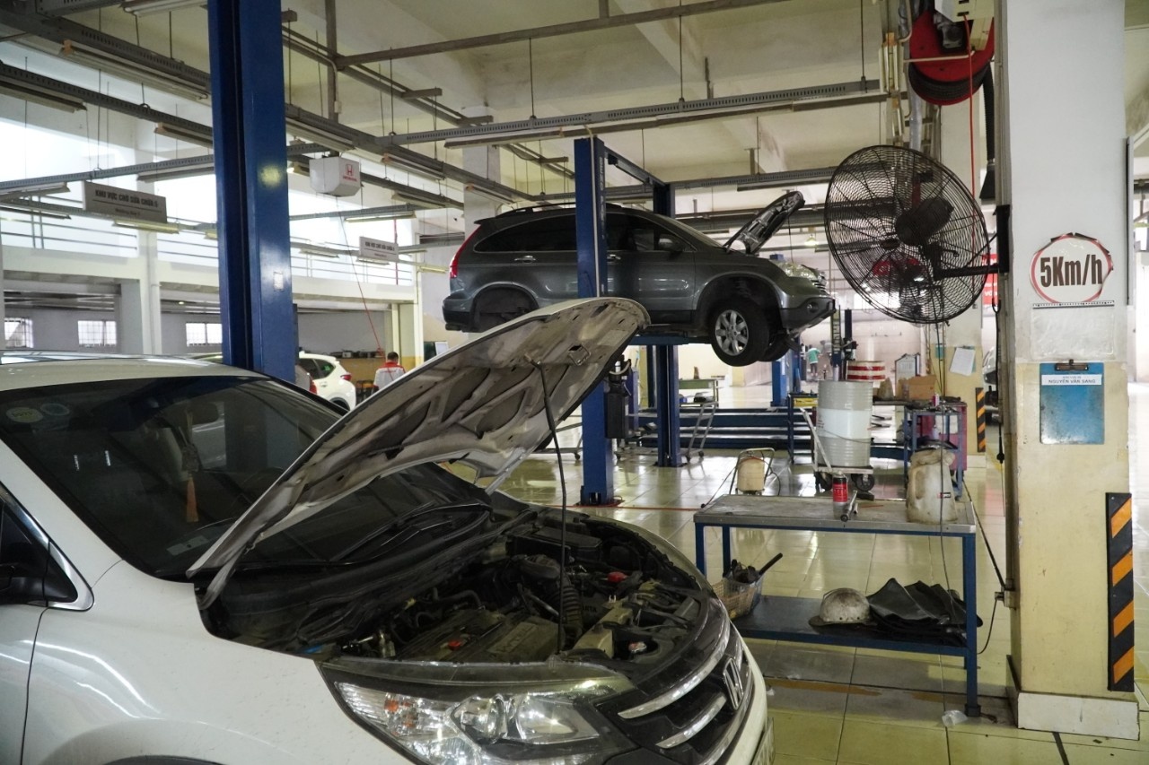 Phóng viên ghé vào khu vực dịch vụ (service), nơi có dây chuyền bảo dưỡng, sửa chữa ôtô chính hãng. Ông Tô Hoàng Nghĩa, quản đốc dây chuyền, tự giới thiệu có 32 năm kinh nghiệm trong ngành.