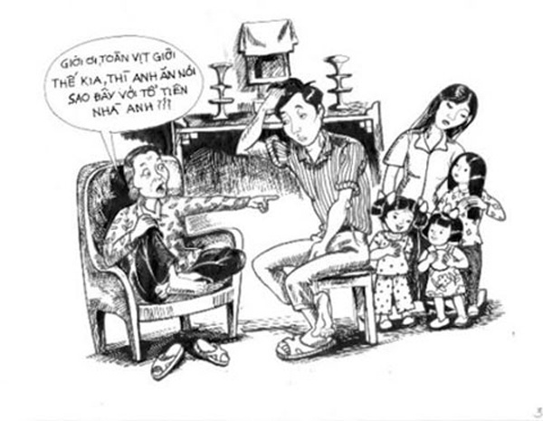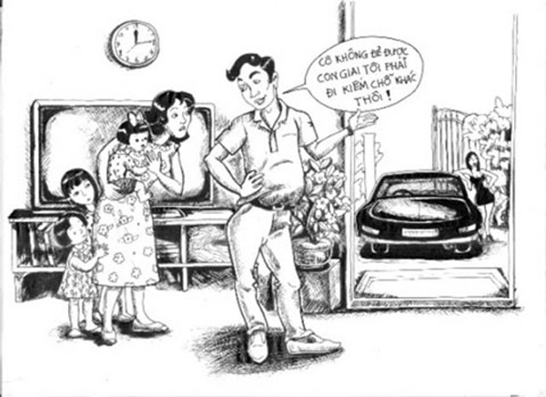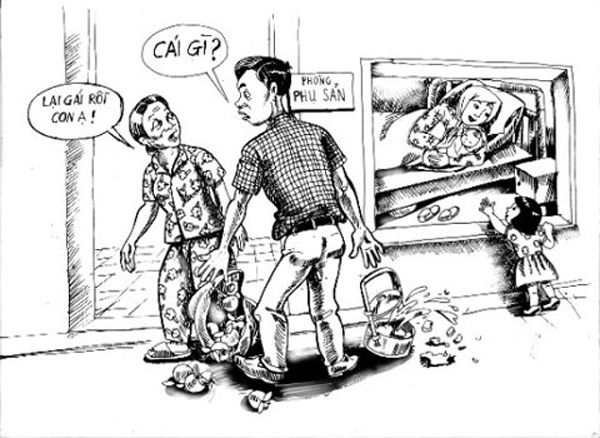 Chùm tranh khắc họa rõ nét tư tưởng trọng nam, chỉ thích sinh con trai của rất nhiều dòng họ, gia đình ở Việt Nam thời hiện đại.