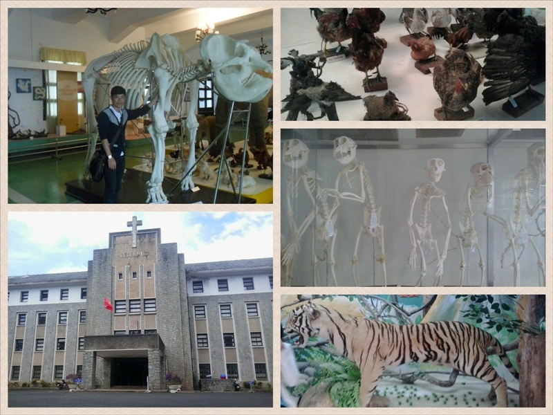 Trên đường trở về trung tâm, tôi ghé qua Bảo tàng sinh học Tây Nguyên nằm trên đỉnh đồi Tùng Lâm. Bảo tàng nằm ở tầng 1 của tòa nhà từng là học viện của giáo hội Công giáo, được xây dựng theo kiến trúc phương tây. Với bề ngoài to lớn lại đối lập với sự tĩnh lặng bên trong, thêm vào đó là trưng bày những hình ảnh, động vật hóa thạch hoặc đã xử lý qua hóa chất sẽ cho bạn rất nhiều cảm giác khác nhau ở từng căn phòng một. Tôi ấn tượng đặc biệt với căn phòng đầy xương động vật linh trưởng vì cho tôi cảm giác sợ, tôi thử tưởng tượng, nếu chúng thức giấc thì sao nhỉ?