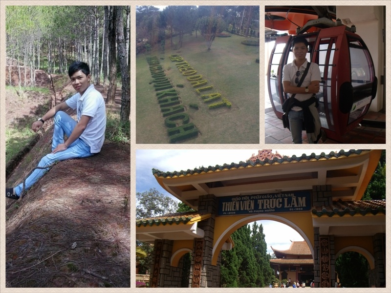 Từ đồi Robin tôi chọn cáp treo để đến Thiền Viện Trúc Lâm, tận dụng cơ hội chụp tự sướng trên cabin và khung cảnh rừng thông bên dưới tuyệt đẹp. Thiền Viện dần hiện ra trước mắt tôi, sự thanh tĩnh và không gian rộng lớn càng toát lên vẻ uy nghiêm cho Thiền Viện. Bên dưới chân đồi là bến thuyền Hồ Tuyền Lâm. Nước trong xanh, phong cảnh rất hữu tình.