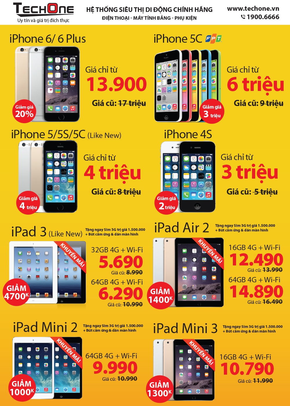- iPhone 5/5C/5S: Giá chỉ từ 4 triệu đồng (Giá cũ từ 6,5 triệu đồng)