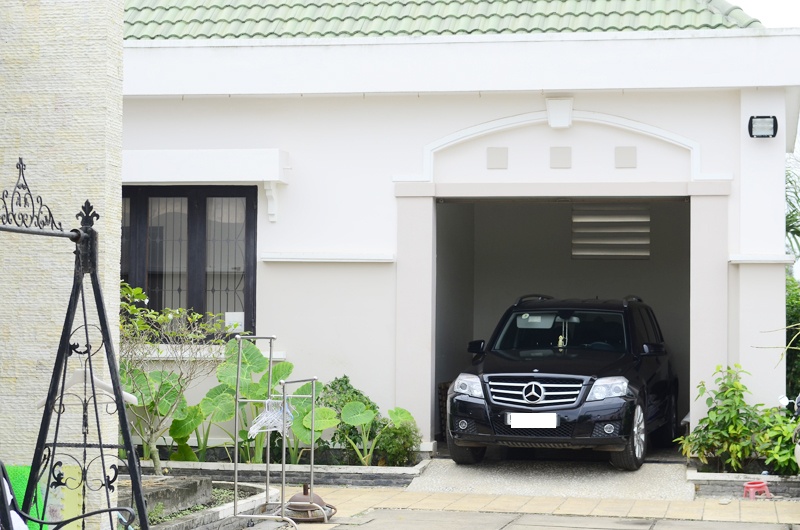 Bốn phía bao quanh căn nhà là khoảng không rộng rãi, cũng là nơi đậu xe ô tô của khách mời và nữ chủ nhân.