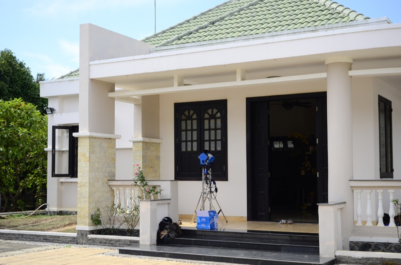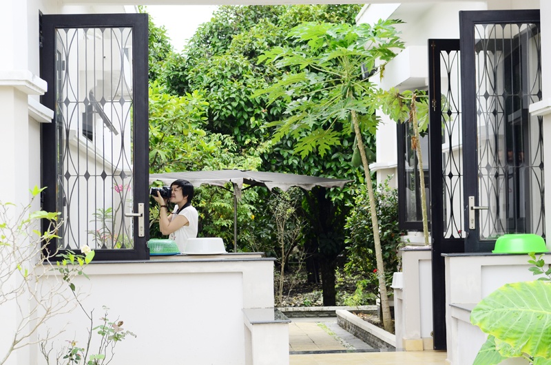 Thoạt nhìn từ bên ngoài, nhiều người nhầm tưởng, nơi ở của Việt Trinh giống một tòa lâu đài sừng sững giữa không gian vắng vẻ, nhưng thực chất, căn nhà của người đẹp Tây Đô có không gian đơn giản được bao bọc bởi một khu vườn sinh thái rộng rãi toàn cây ăn trái và rau xanh.