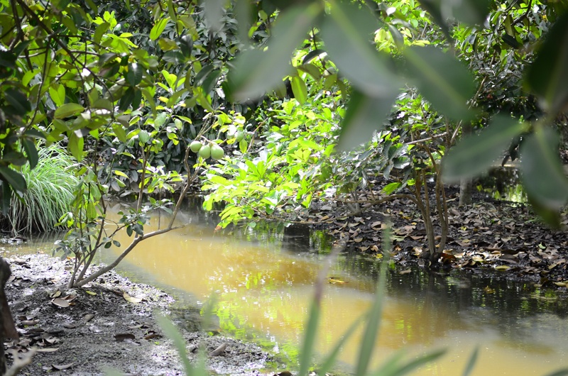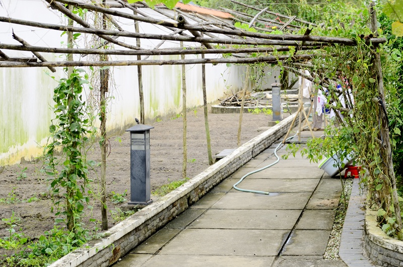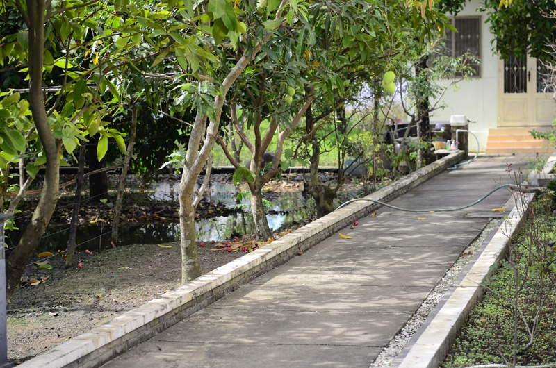 Đi sâu hơn là lối đi riêng dẫn ra phía vườn cây ăn trái.