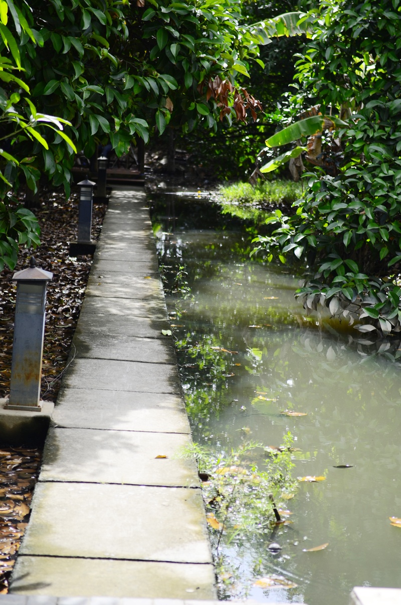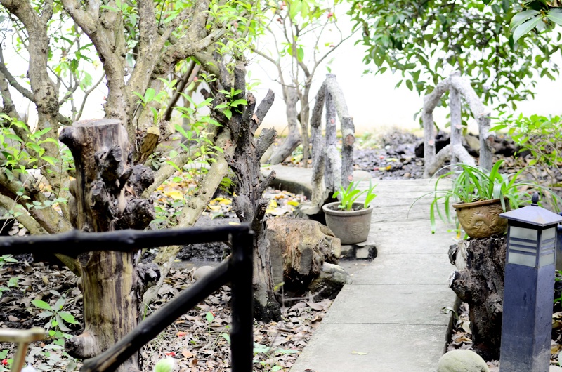 Cạnh đó còn có thêm lối đi dẫn ra một góc khác của khu vườn lớn, lối đi mộc mạc có thể ngắm nghía ao hồ xung quanh.