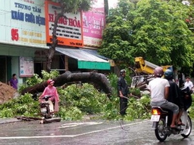 | Cây bị bão quật đổ tại Thanh Hóa. |