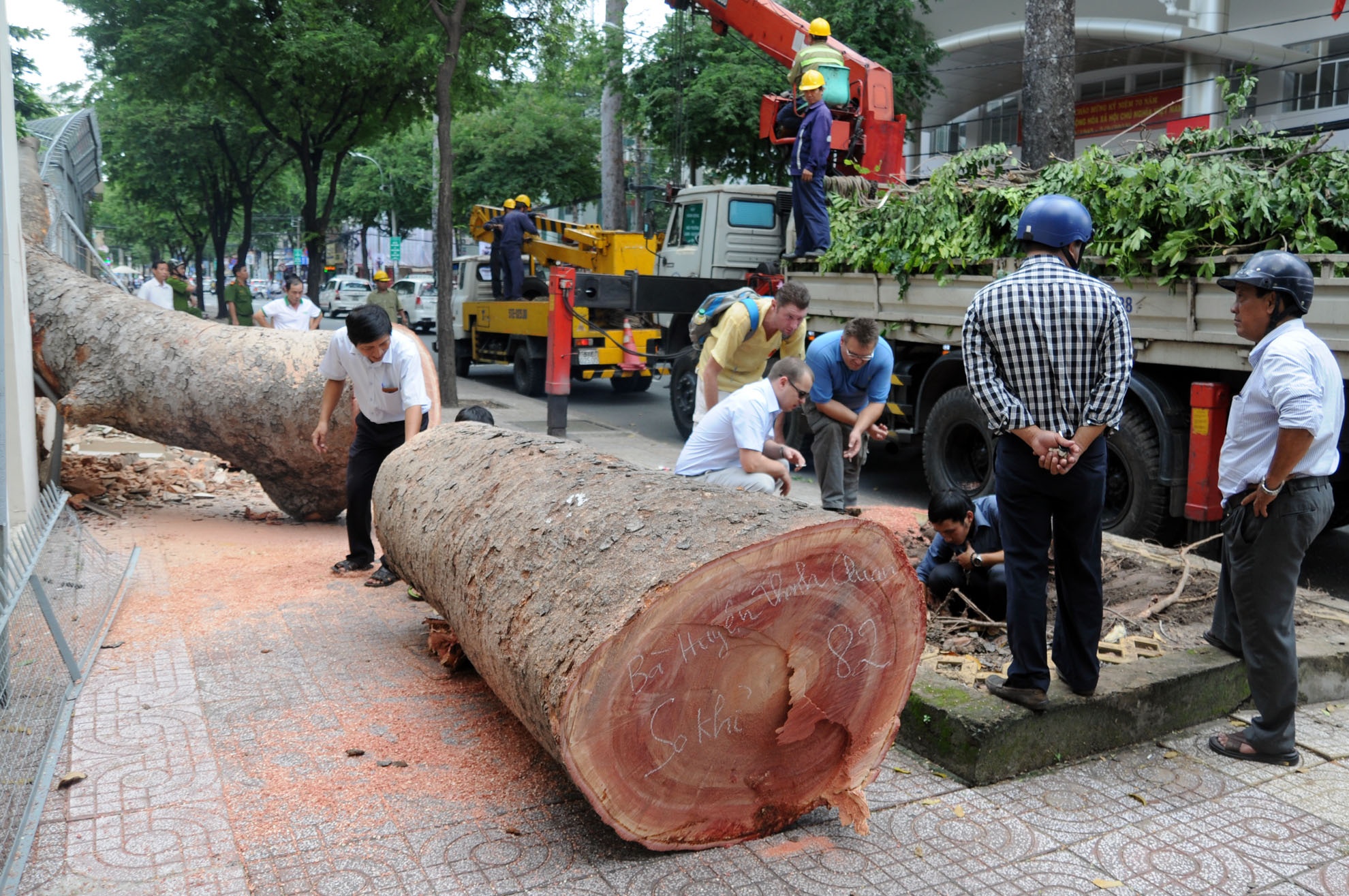 | Nhân viên Công ty Cây xanh xử lý hiện trường. Ảnh: Nguyễn Quang |