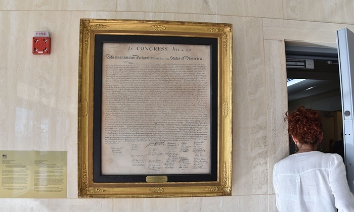 | Một bản sao Tuyên ngôn Độc lập của Mỹ trên tường trong đại sứ quán. Ảnh: Getty |