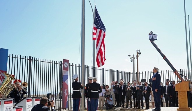 Quốc kỳ Mỹ lại tung bay tại Đại sứ quán nước này ở Cuba sau khi Ngoại trưởng Mỹ John Kerry dự lễ thượng cờ tại đây hôm 14/8.