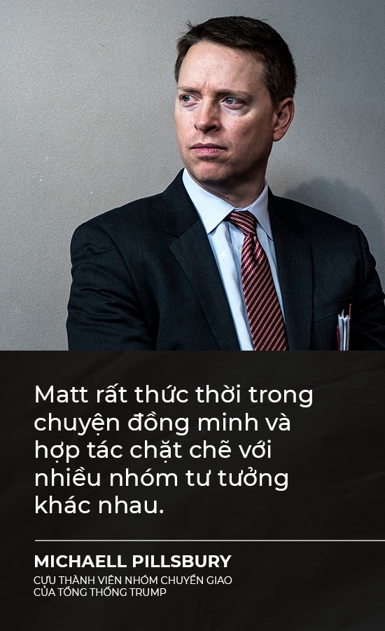 "Matt không cho rằng ông đang định hướng tổng thống, nhưng ông sẽ sẵn sàng khi (ông Trump) đến thời điểm" cần đưa ra quyết định, theo lời Tim Morrison, cựu quan chức NSC từng làm việc với Matthew Pottinger.