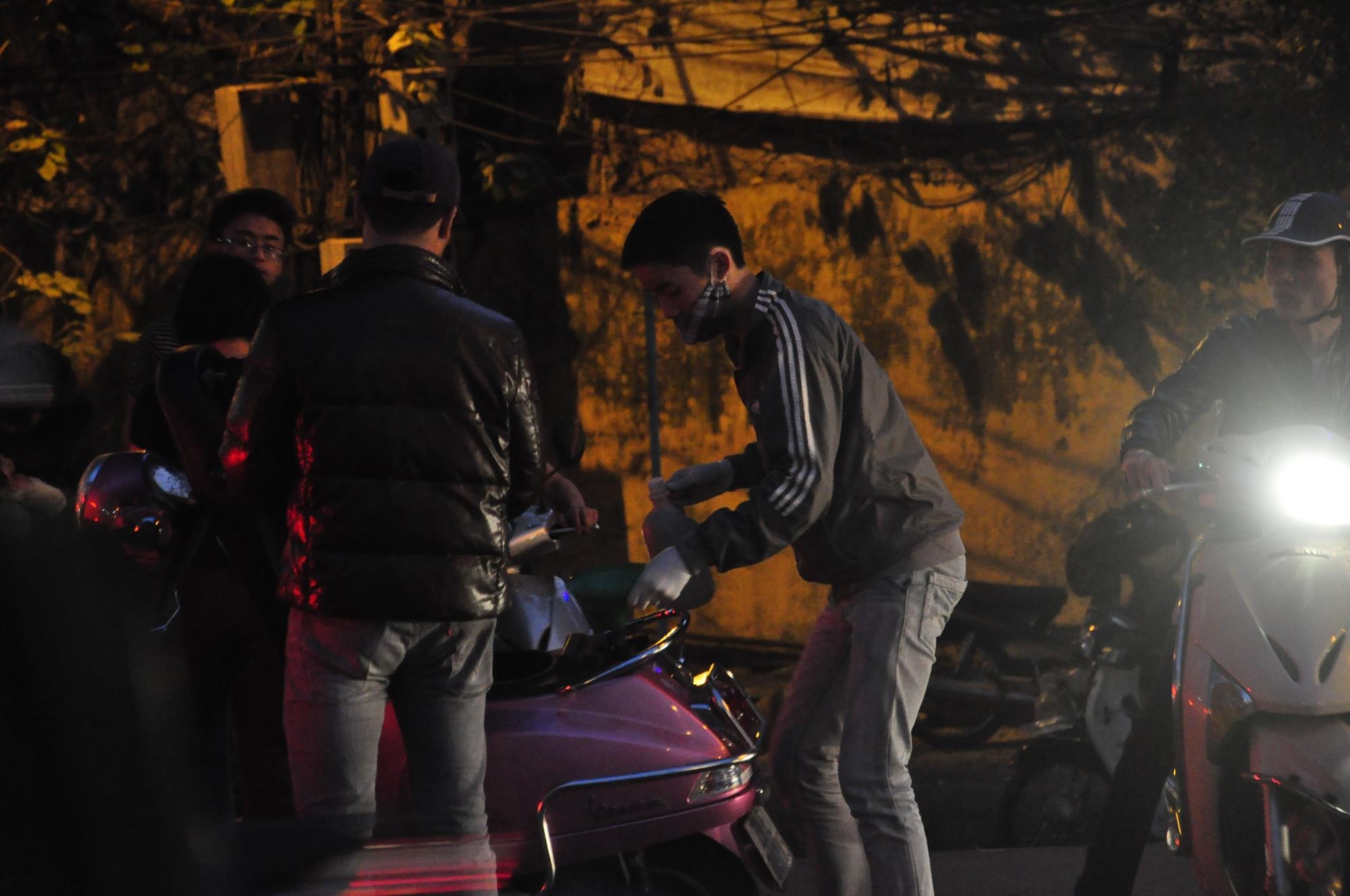 Lợi dụng nhu cầu lớn của khách hàng đêm Giao thừa, một nhóm người lạ mua xăng và bán lẻ cho khách ngay trước cửa cây xăng với giá 30-35.000 đồng/lít.