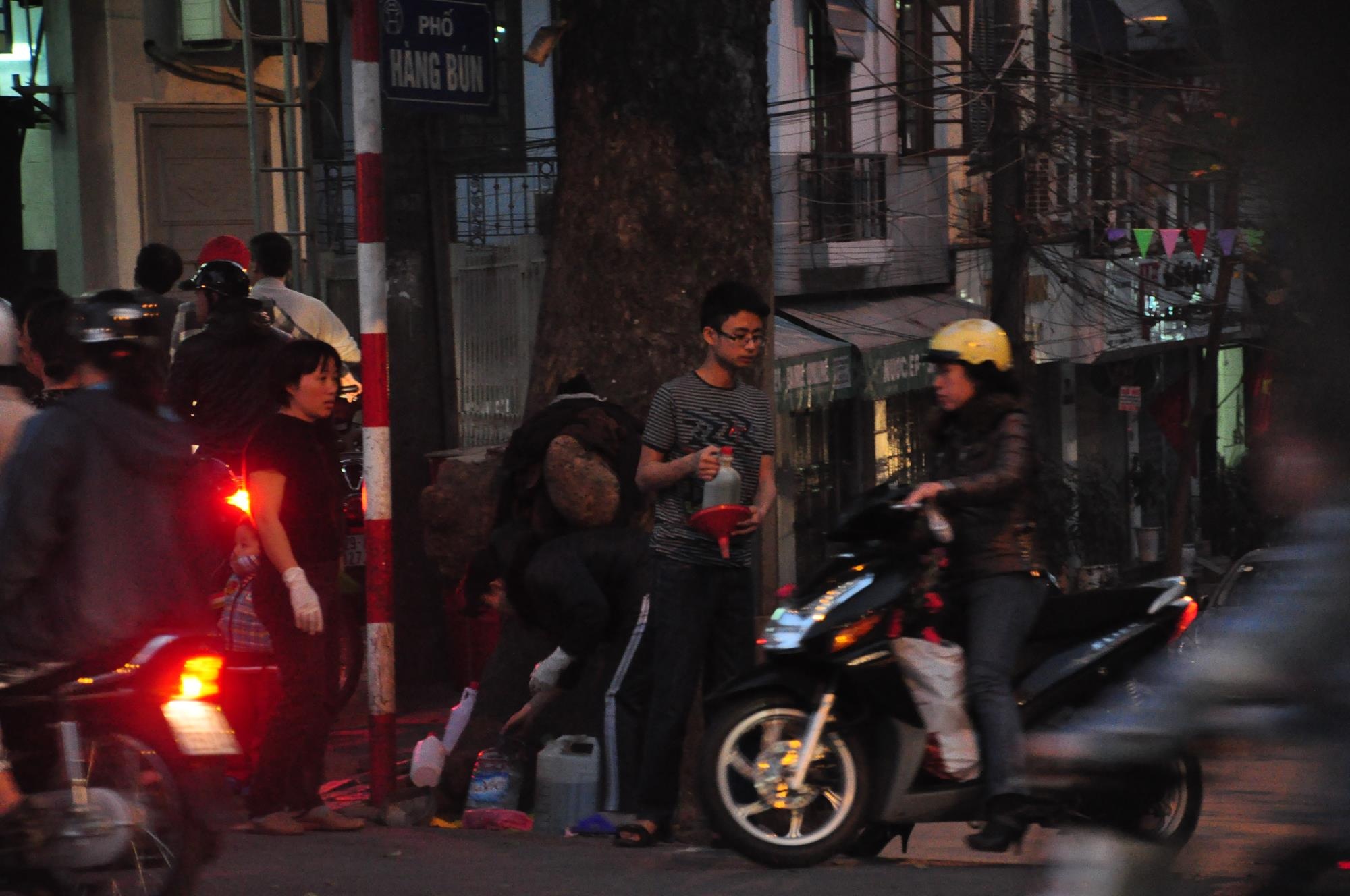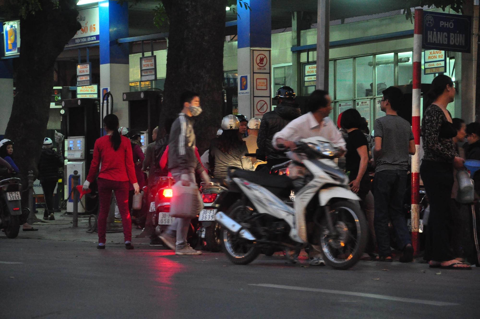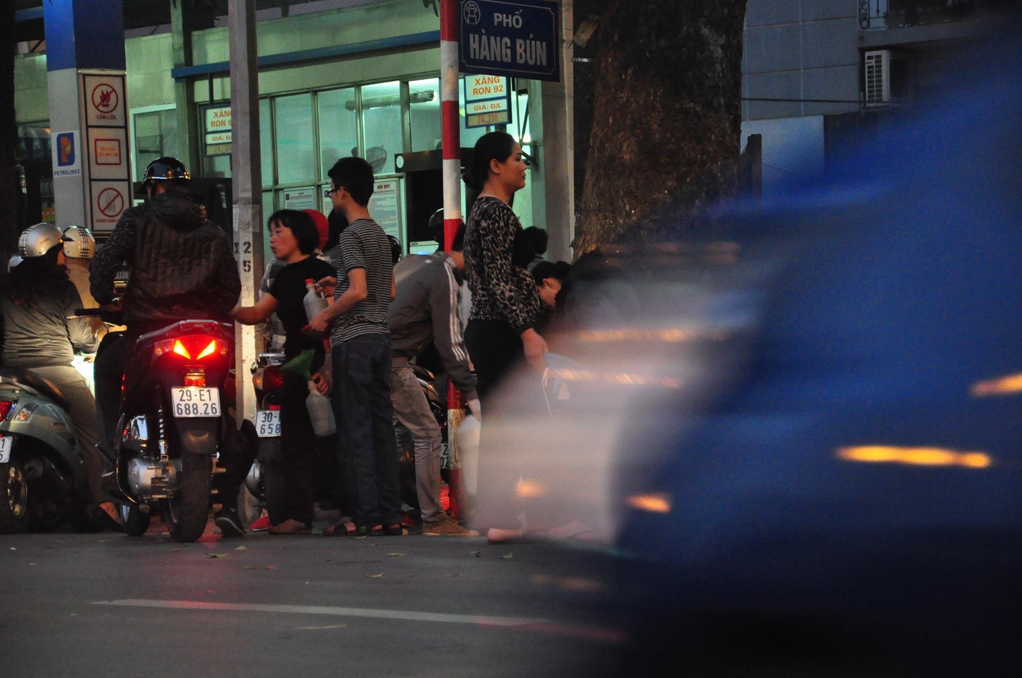 | Ngày cuối năm, người dân thủ đô đổ xô đi mua xăng dự trữ cho ngày đầu năm mới du xuân. Lợi dụng tình hình đó, một nhóm người xuất hiện tại cây xăng số 1 Hàng Bún (quận Ba Đình, Hà Nội) để dùng can mua xăng tại trạm, bán lại cho những khách hàng vội vàng, không có thời gian xếp hàng vì quá tải. |