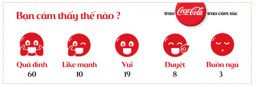 Đáng chú ý, Việt Nam là thị trường đầu tiên triển khai chiến dịch này trong toàn hệ thống hoạt động của Coca-Cola, đi trước hơn 200 quốc gia trên toàn cầu và thể hiện nhiều ý tưởng sáng tạo mang tính tiên phong. Không chỉ có trên các lon và chai nhựa, biểu tượng cảm xúc còn hiện diện ở khắp nơi trong cuộc sống của giới trẻ Việt.