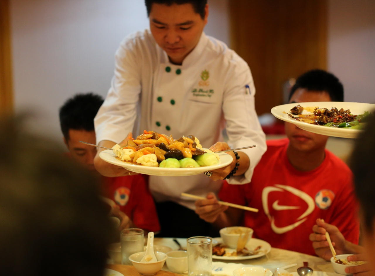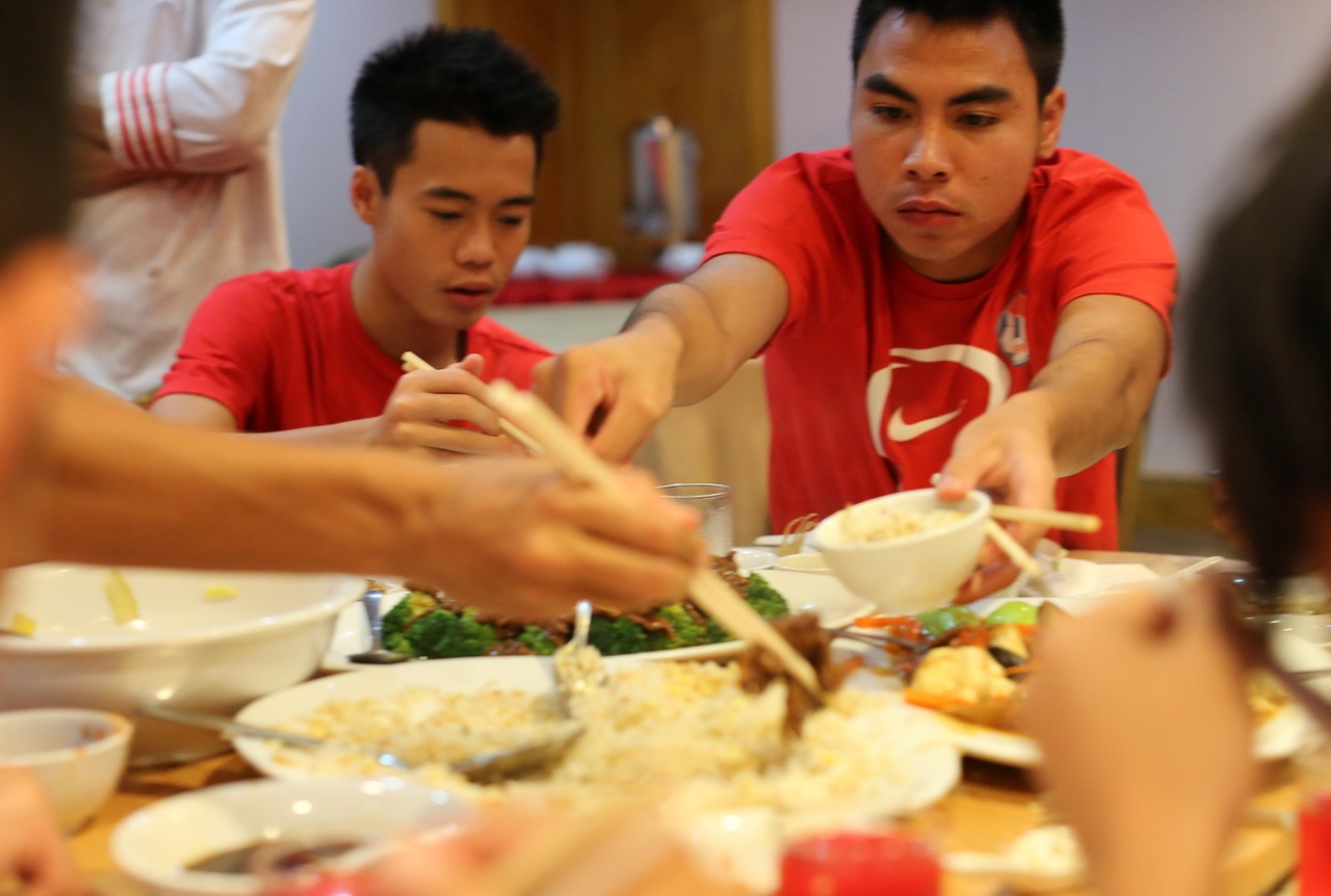 | Thi đấu mất nhiều năng lượng nên các bữa ăn phải đảm bảo đủ dinh dưỡng để các cầu thủ có thể hồi phục sức khỏe. |