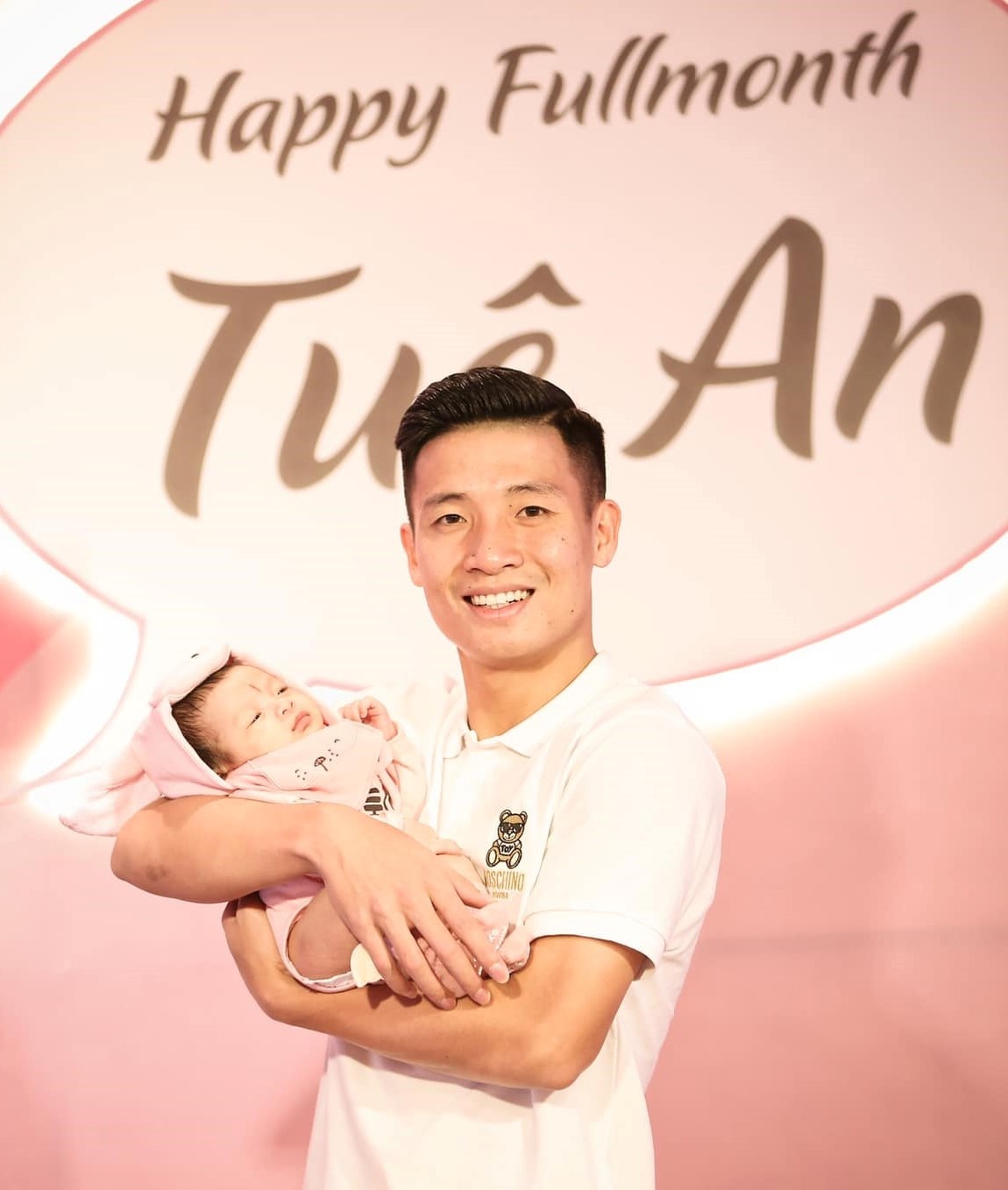 Ngày 21/10, vợ chồng trung vệ Bùi Tiến Dũng hạnh phúc đón con gái đầu lòng - bé Bùi Khánh Tuệ An (tên ở nhà là Sushi). Từ lúc chào đời, “thiên thần nhỏ” của cầu thủ 24 tuổi liên tục nhận được nhiều lời khen và sự yêu mến từ người hâm mộ bóng đá. Ảnh: Nguyễn Khánh Linh. |
