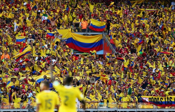 | Niềm vui khôn tả của các CĐV Colombia sau chiến thắng ấn tượng của đội nhà. |