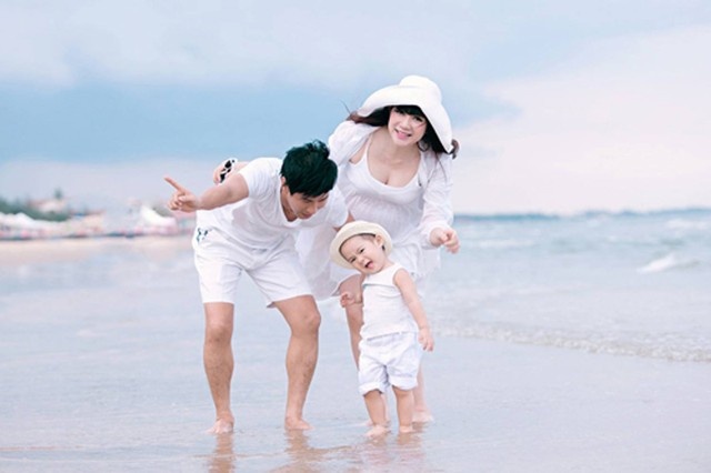 | Người đẹp hài lòng với công việc chăm sóc chồng và hai đứa con xinh xắn. |