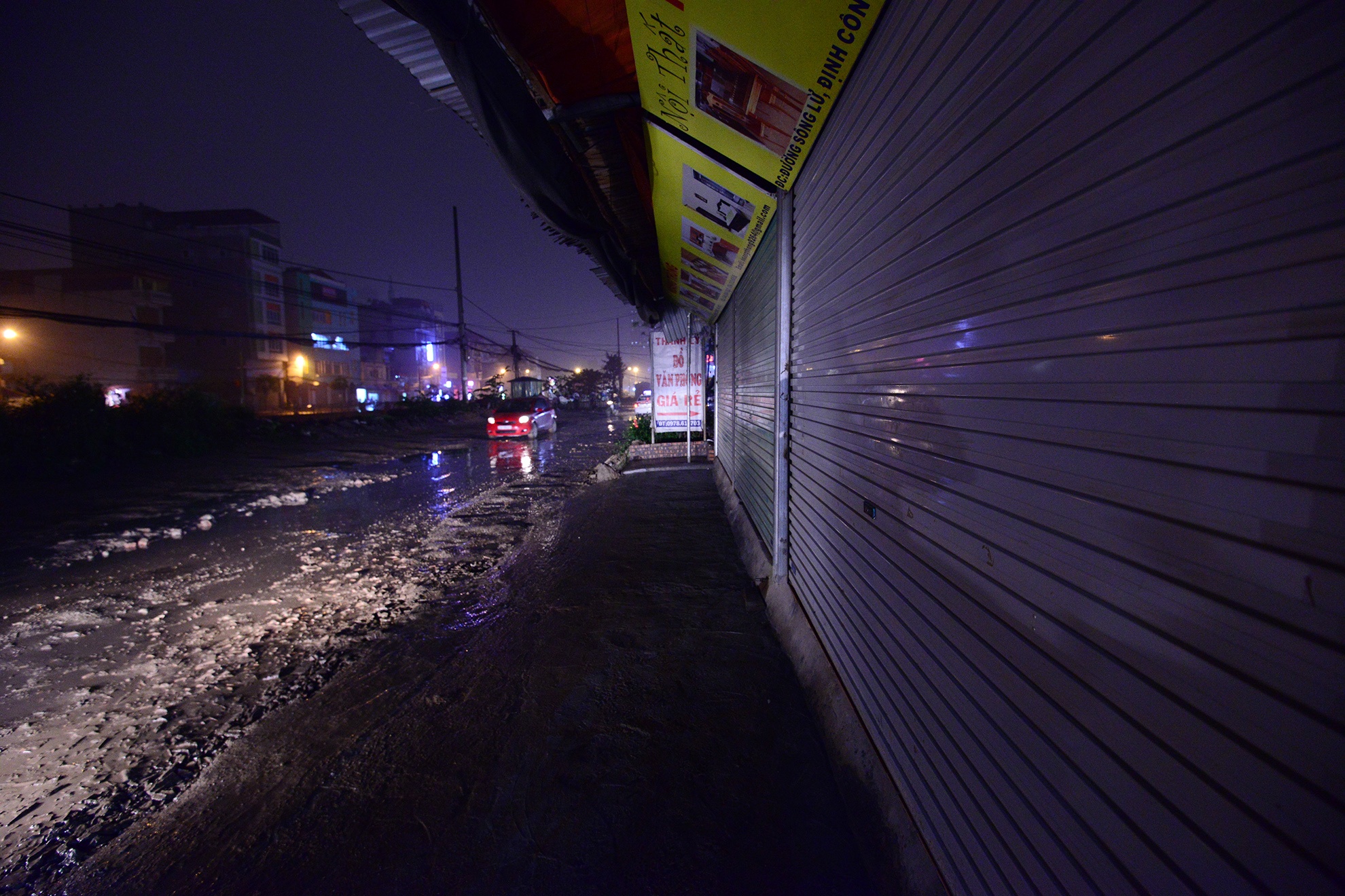 | Khổ nhất là những hộ kinh doanh hai bên đường. Mới 19h, nhưng nhiều cửa hàng đã phải đóng cửa vì vắng khách. "Từ ngày đường lầy lội, khó đi lại, chẳng ai đến. Có ngày tôi chỉ bán được 2 - 3 món đồ", chủ một cửa hàng bán đồ gỗ tâm sự. |