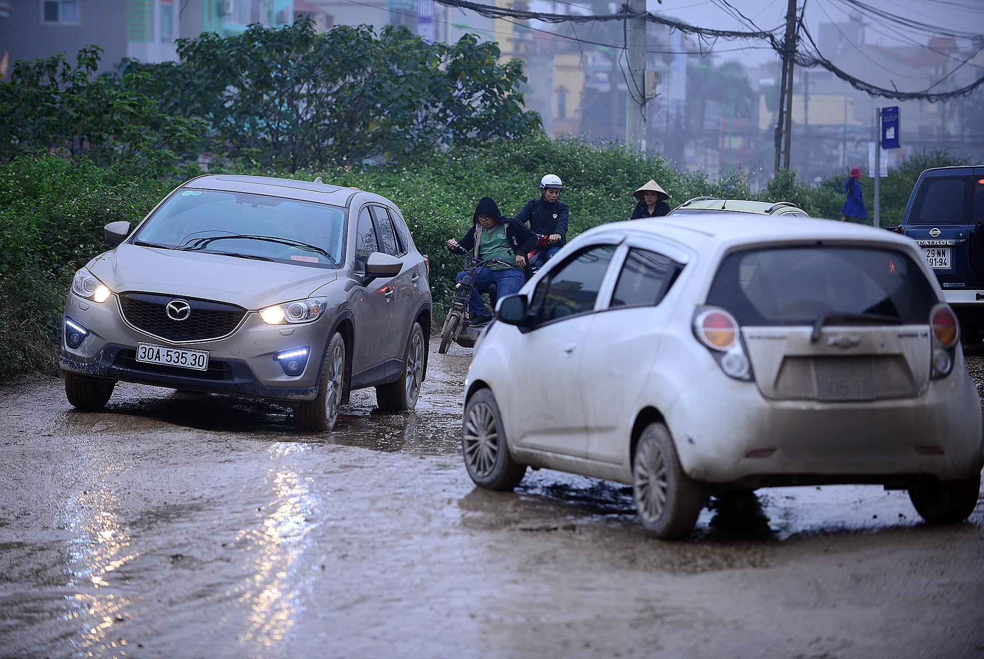 | Đi trên con đường này nếu tài xế ôtô không cẩn thận rất dễ đụng nhau do đường trơn trượt, nhiều ổ gà. |