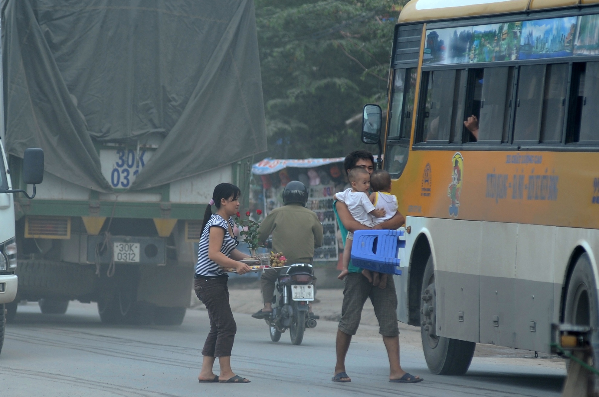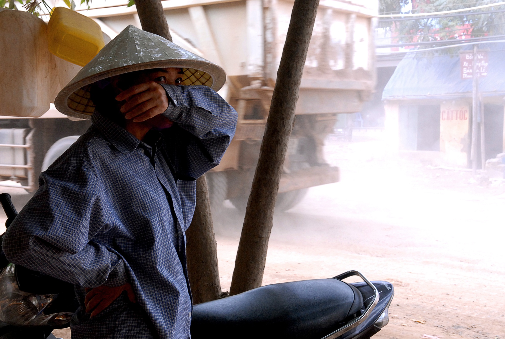 Để có được tuyến đường đẹp này, hàng chục nghìn hộ dân hai bên quốc lộ đã phải sống khổ sở trong rất nhiều năm. Mỗi khi xe tải đi qua, các cơn lốc bụi lại bay mịt mù. Người dân ngồi sâu trong nhà cũng không chịu nổi.