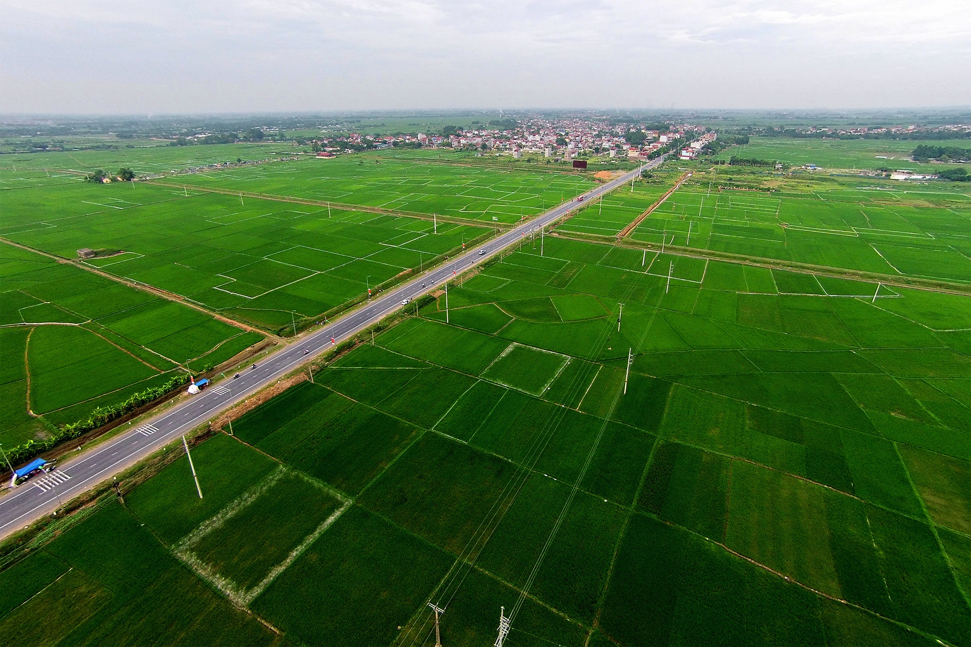 Tiến về phía xa hơn giáp các huyện Phúc Thọ, thị xã Sơn Tây, hai bên đường là cánh đồng lúa xanh mướt hút tầm mắt, đến mùa gặt thì vàng rực.