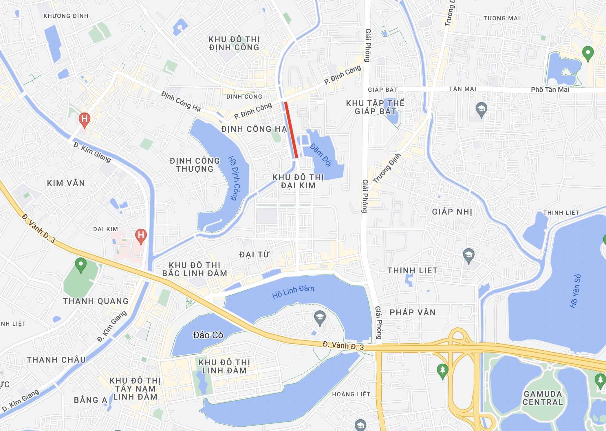 | Đoạn phố Nguyễn Cảnh Dị, quận Hoàng Mai, Hà Nội. Ảnh: Google Maps. |