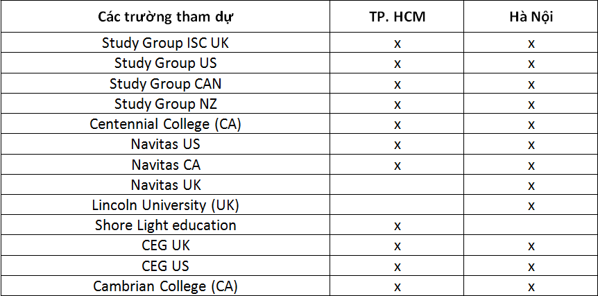 Bên cạnh đó còn có cơ hội gặp gỡ các đại diện trường để trao đổi cụ thể về khoá học và trao đổi trực tiếp với chuyên viên tư vấn của các nước.