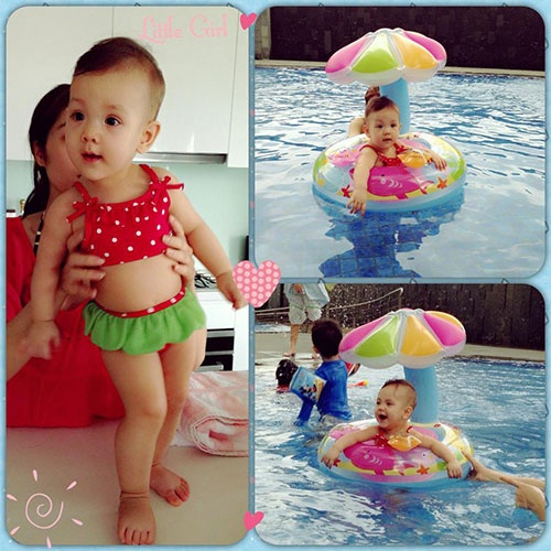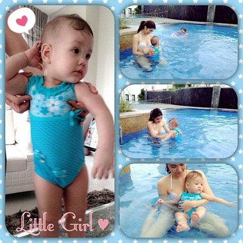 | Bích Huyền thường đưa bé đi bể bơi. |