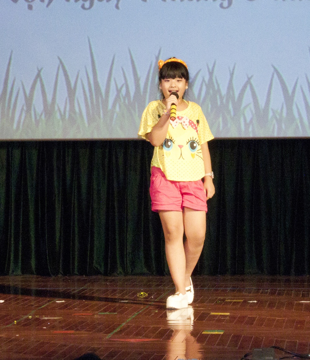 Xuất hiện trong chương trình nhạc hội Tết thiếu nhi do trung tâm văn hóa Kim Đồng tổ chức tối 1/6, bé Hồng Khanh - con gái nghệ sĩ Chiều Xuân - nhận được sự yêu mến và cổ vũ nhiệt tình từ các bạn nhỏ. Với chiếc băng đô xinh xắn cùng trang phục dễ thương, sắc màu, Hồng Khanh gây ấn tượng bởi sự mũm mĩm, đáng yêu và ngây thơ.