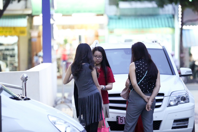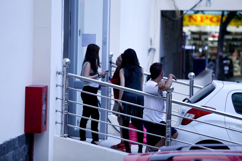 Hai mẹ con Hiền Thục nán lại trò chuyện với một vài người bạn quen trước khi bước vào phòng trà để luyện tập cùng cả ê-kíp.