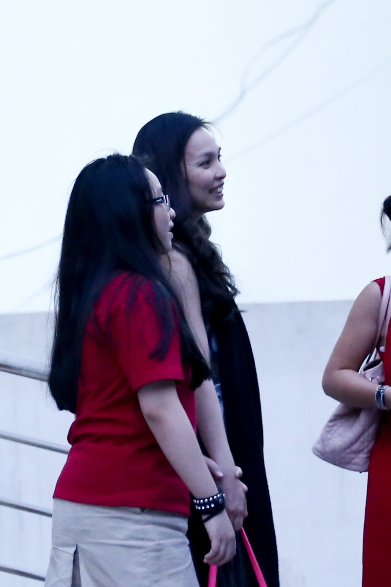 Trong buổi tập chiều tối ngày 5/9, Hiền Thục có mặt từ khá sớm. Cô diện cả một cây đen ấn tượng. Trong khi đó, tháp tùng cô là công chúa nhỏ Gia Bảo lại mặc áo đỏ rất nổi bật. Dường như cô nhóc vừa đi khai giảng về và được mẹ đưa thẳng tới buổi luyện tập.