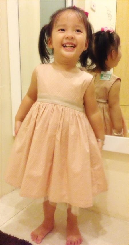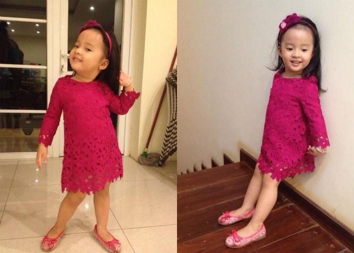 Công chúa Bảo Hân nhà Hồng Đăng được mẹ diện cho đầm ren hồng, ton-sur-ton với giày búp bê và tạo dáng như người mẫu.