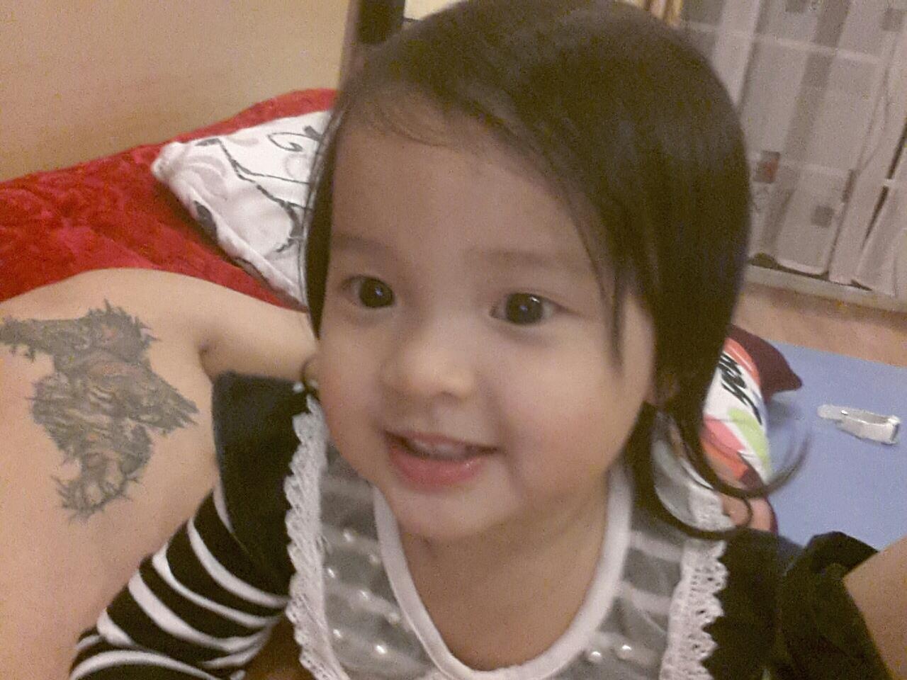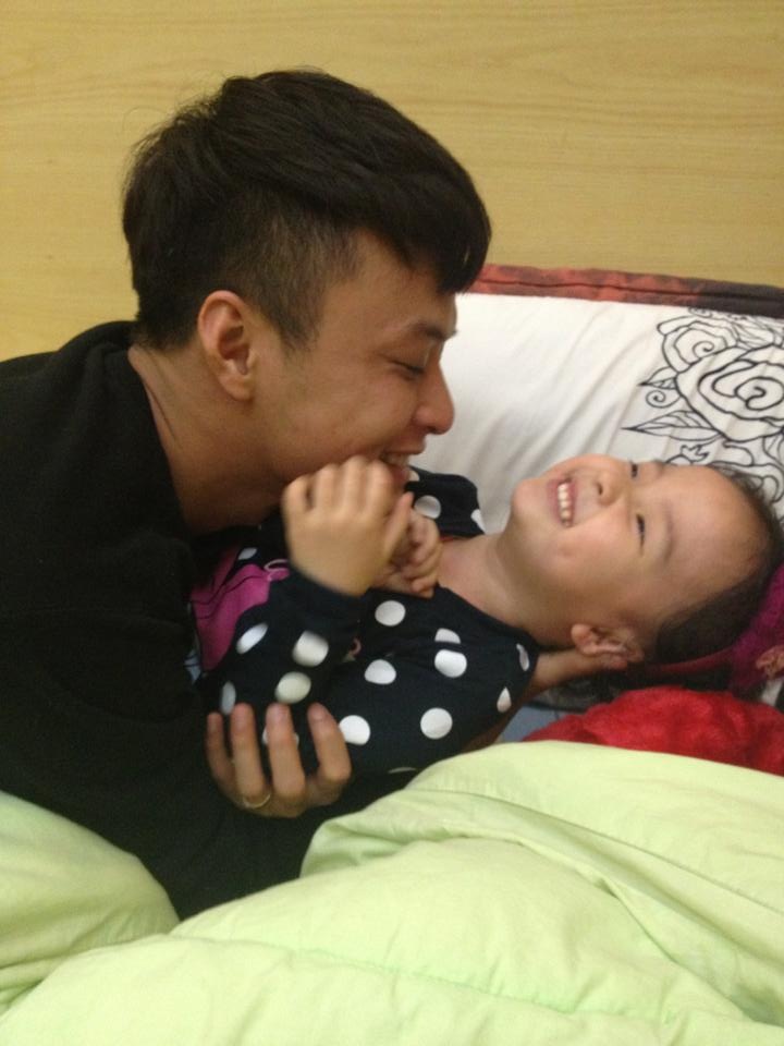 Nụ cười rạng rỡ của bà xã Hồng Đăng khi vui đùa cùng cô con gái nhỏ.