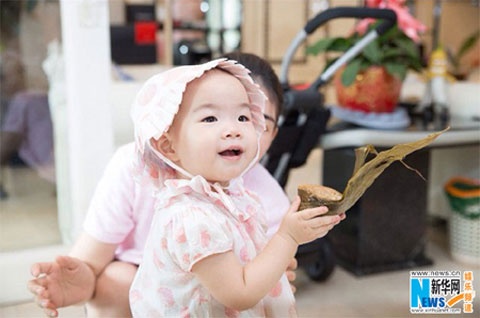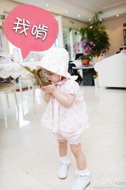 Mới đây, Huỳnh Dịch đăng lên blog tấm ảnh cô con gái nhỏ đang ăn bánh nếp - loại bánh truyền thống của người Trung Quốc trong ngày Đoan ngọ - cùng những lời chia sẻ ngọt ngào.