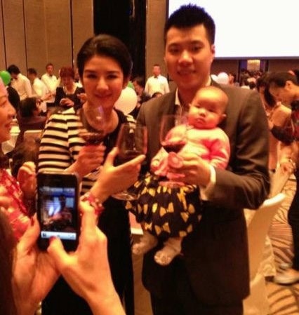 Vợ chồng Huỳnh Dịch trong lễ mừng 100 ngày chào đời của con gái.