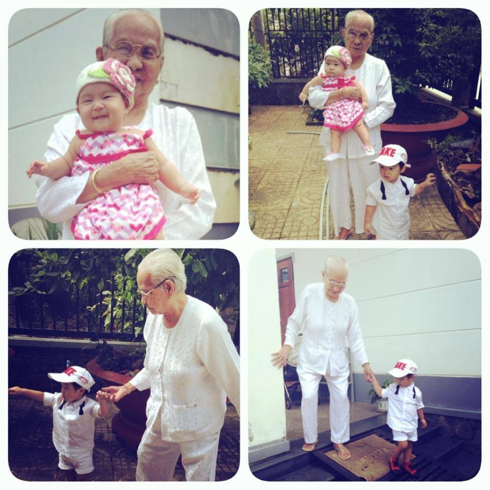 Cậu nhóc Rio quen thuộc với mọi ngóc ngách ở nhà bà nội nên rất thích thú với việc dắt bà đi dạo quanh nhà. Minh Hà chia sẻ khi đăng tải hình ảnh chụp con trai và mẹ chồng: "Rio về nhà nội mà tự nhiên như nhà mình đó dắt nội đi chỗ này chỗ kia tham quan nữa. Mà cả nhà có ai thấy Cherry giống bà nội không nè?".