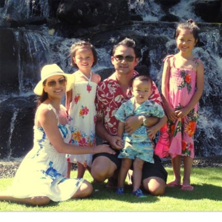 | Hình ảnh hạnh phúc hiện tại của siêu mẫu Ngọc Thúy cùng bạn trai là luật sư và các con. |