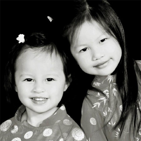| Nụ cười rạng rỡ của hai con gái Ngọc Thúy. |