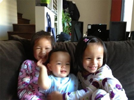 | Hai con gái của Ngọc Thúy vui vẻ đùa nghịch bên cậu em trai (là con của Ngọc Thúy với người chồng luật sư). Siêu mẫu Ngọc Thúy chia sẻ: "Tất tần tật tài sản, vốn liếng của tôi đây". |