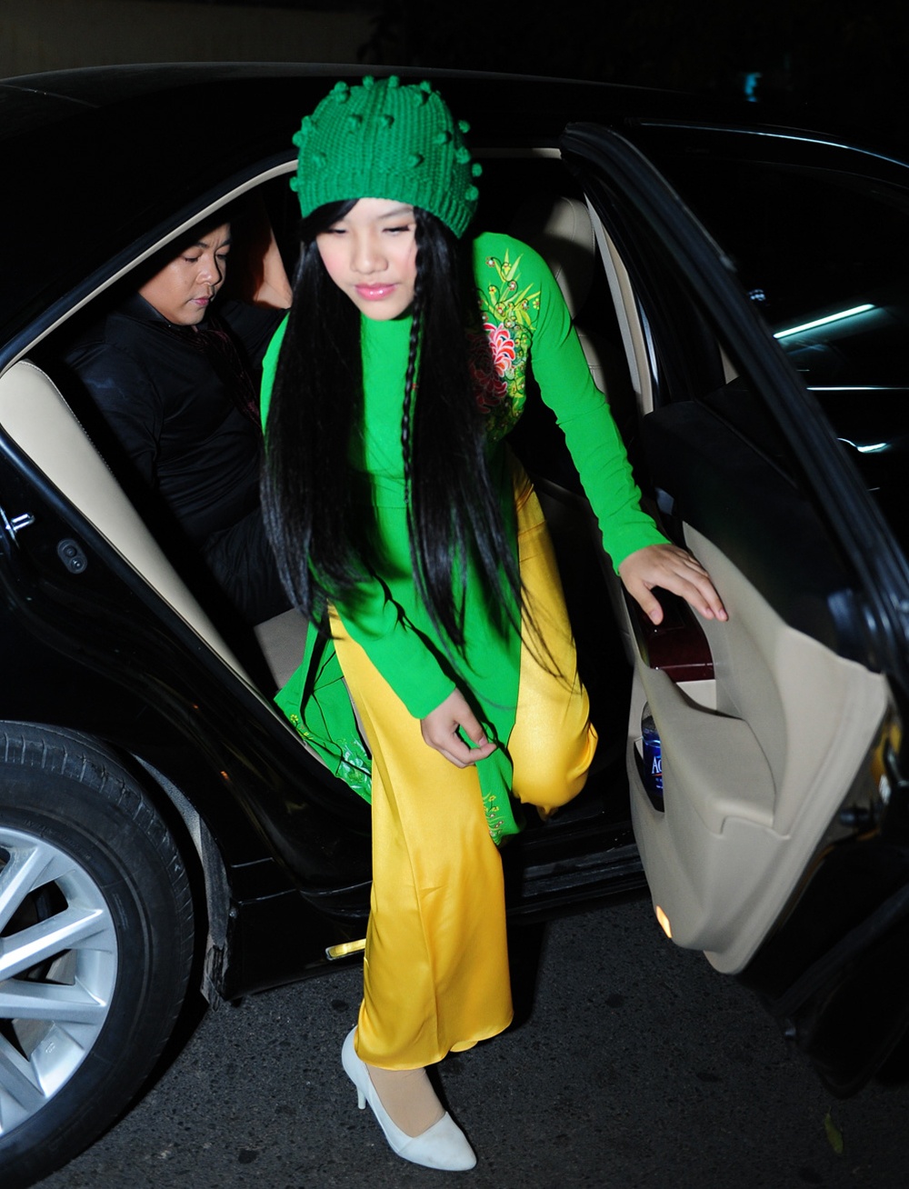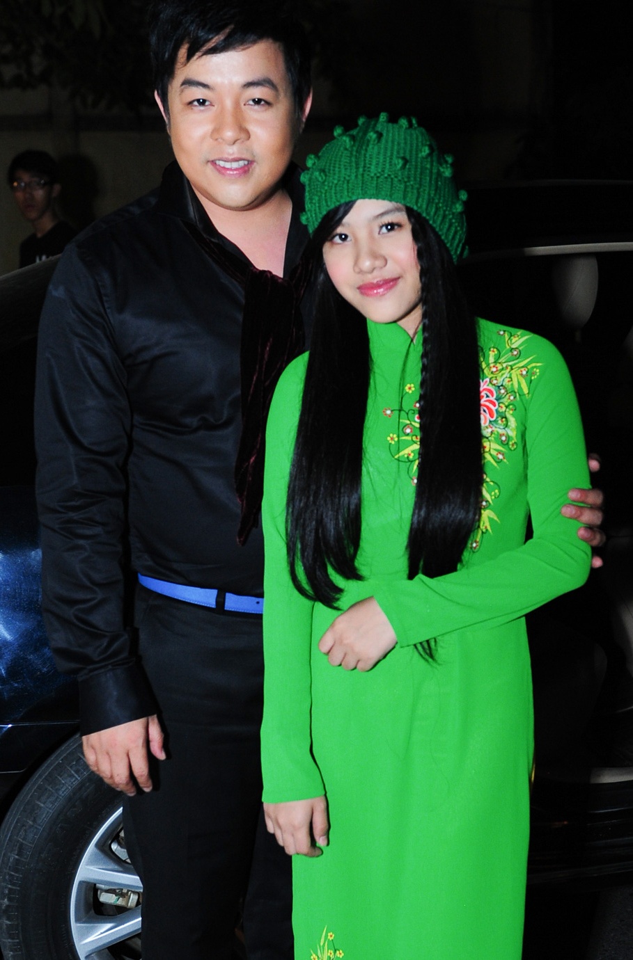 | Tối 25/4, bé Huyền Trân được cha nuôi Quang Lê đưa đến sân khấu Lan Anh, TP HCM bằng xế hộp sang. Hai cha con đến từ sớm để chuẩn bị cho show diễn. |
