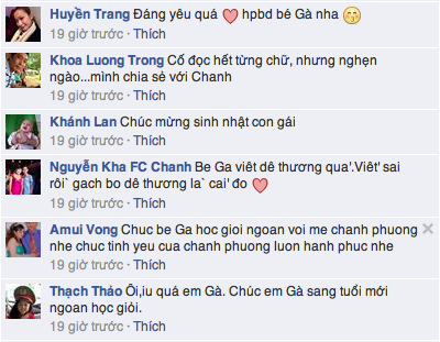 | Rất nhiều người hâm mộ đã để lại lời bình luận chúc mừng sinh nhật bé Gà và khen cô bé ngoan ngoãn, dễ thương. |