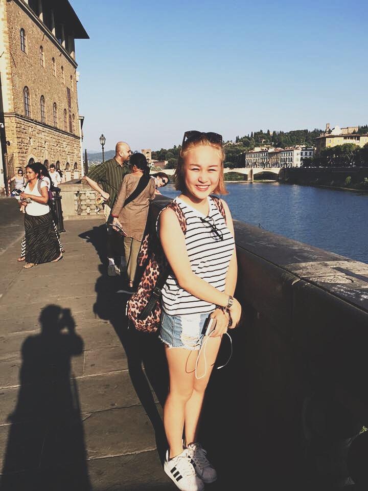 Sau khoảng một tuần Thiện Thanh theo học tại Ý, nhạc sĩ Quốc Trung có dịp ghé thăm con gái trong chuyến công tác một số nước phương Tây. Hai bố con đã có buổi tham quan một số danh thắng nổi tiếng và trung tâm thương mại Firenze của đất nước này.