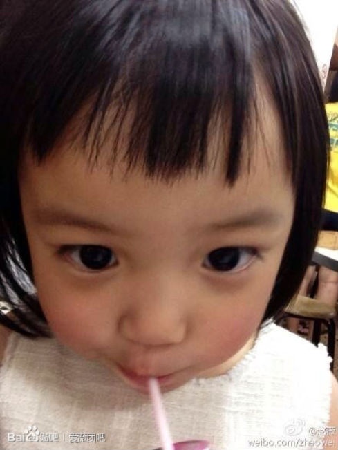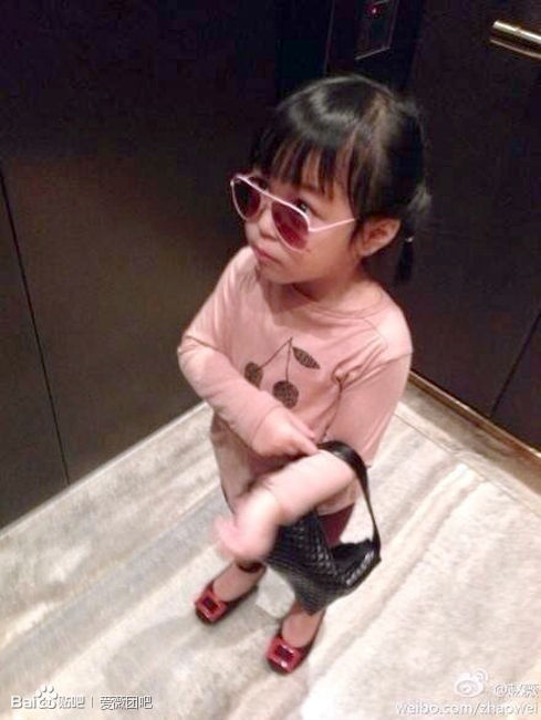 | Con gái của Triệu Vy chu "mỏ" đáng yêu. |