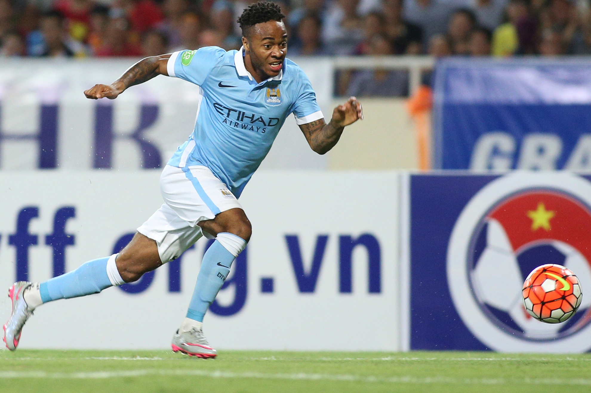 | Phút thứ 19, từ đường bật bóng của David Silva xuống cánh trái, Sterling bứt tốc mạnh mẽ thoát xuống vòng cấm địa đội bóng áo đỏ. |