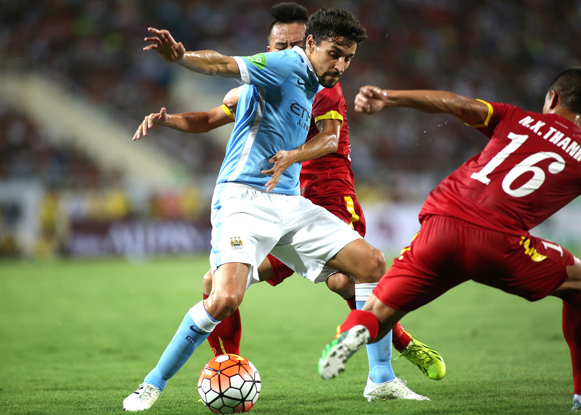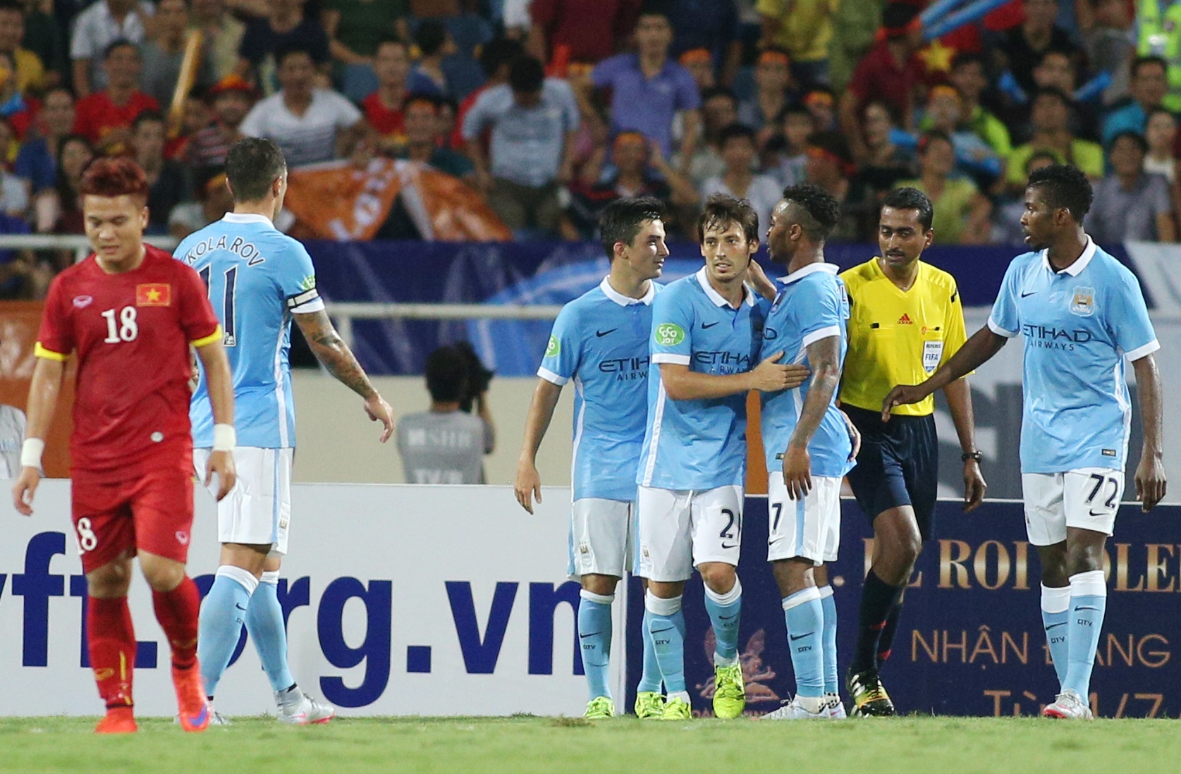 | Trận giao hữu giữa tuyển Việt Nam và CLB Manchester City diễn ra tối 27/7 với cơn mưa bàn thắng, trong đó đội chủ nhà chỉ ghi được một bàn ở phút cuối hiệp 2. |