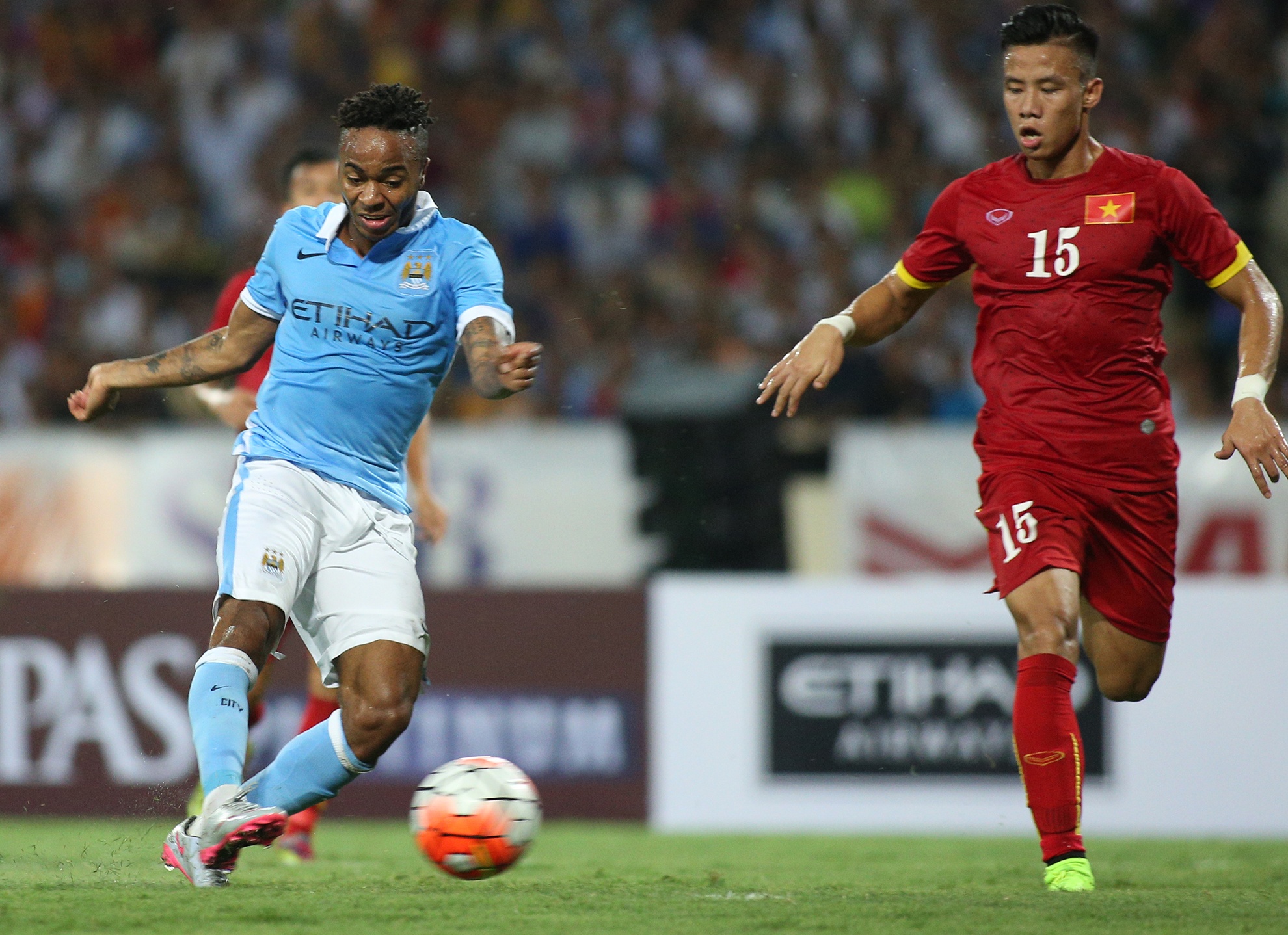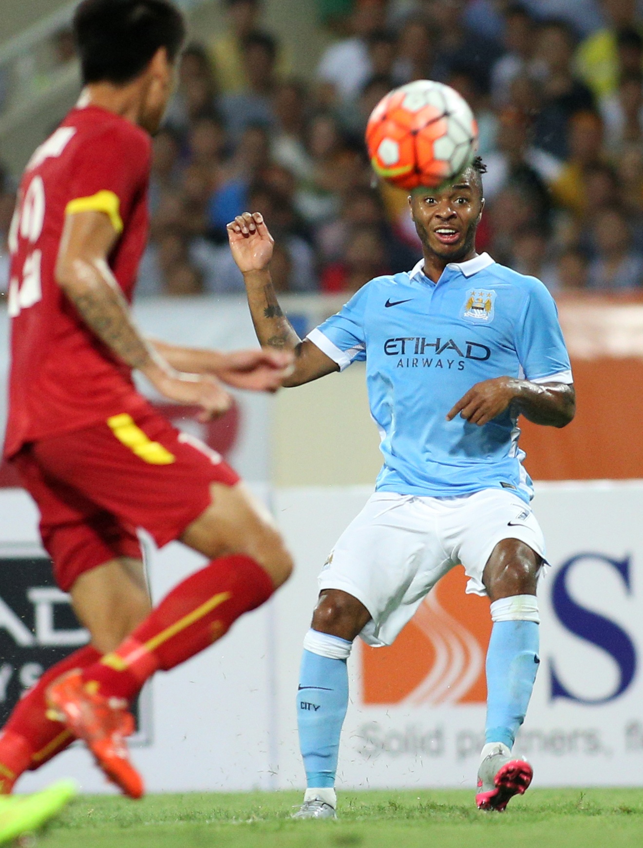 | Phút 30, Sterling băng xuống nhận đường chuyền của Kelechi Iheanacho. Tân binh mang áo số 7 dứt điểm vượt tầm với của Vĩnh Lợi ghi bàn nâng tỷ số lên 4-0. Cầu thủ trị giá 49 triệu bảng hoàn tất cú đúp cho Man City. |